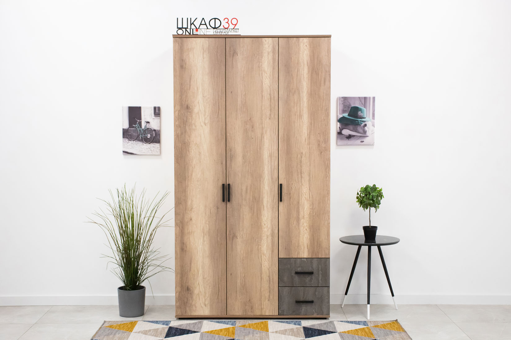 Шкаф Нельсон имеет 3 распашных фасада. 2 выдвижных ящика.