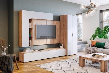 В моде простота. Легкие и практичные интерьеры сегодня на пике популярности и все чаще встречаются как в квартирах, так и в загородных домах. Именно такую незамысловатую, но теплую обстановку Вы создадите с мебелью из коллекции Сканди. Модули выполнены из высококлассного ЛДСП в декоре дуб бунратти в сочетании с МДФ белого цвета. Наружная фурнитура отсутствует - Вы одним касанием откроете и закроете дверцы и ящики благодаря системе push-to-open. Кстати о ящиках: они оснащены шариковыми направляющими полного выдвижения. Фишка коллекции заключается в том, что сразу несколько модулей Вы можете разместить как горизонтально, так и вертикально. Они не потеряют своей функциональности!