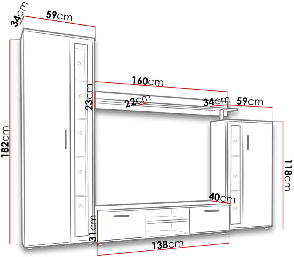 Стенка BENTLEY – это комплект элегантной мебели, который идеально впишется в гостиную или гостиную.
