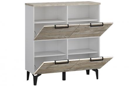 Прихожая Чикаго. Организовать хранение в малогабаритной прихожей не всегда просто ввиду отсутствия места и особенностей планировки этого помещения в современных квартирах. С мебелью из коллекции Чикаго Вы быстро и с комфортом решите эту задачу! Использовать пространство рационально помогут: напольная вешалка интересной конструкции со штангой и крючками для верхней одежды и полками для обуви, вместительный комод с откидными дверцами и зеркало, как элемент декорирования пространства. Модульная коллекция выполнена из ЛДСП в современном декоре с тиснением натурального дерева и украшена стильной фурнитурой.