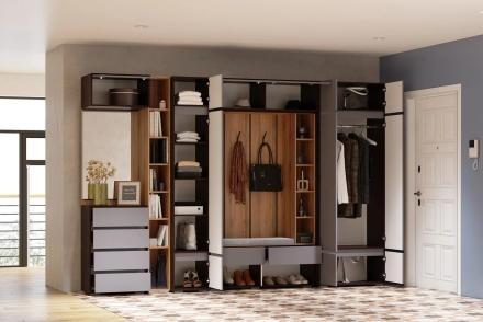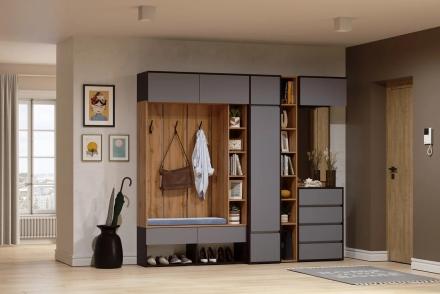 Прихожая – это обязательная составляющая любой квартиры или дома. Именно данное помещение создает первое впечатление о жильцах. Модульная прихожая «Прага» характеризуется в первую очередь функциональностью. Она достаточно вместительна для хранения различных вещей, обуви, одежды, сумок. Данное изделие выполнено в современном цветовом стиле, который отличается мобильностью, удобством и отличным функционалом. Вы можете собрать модульную прихожую под любое Ваше желание, если добавить антресоли общая высота прихожей составит 2,5 метра.