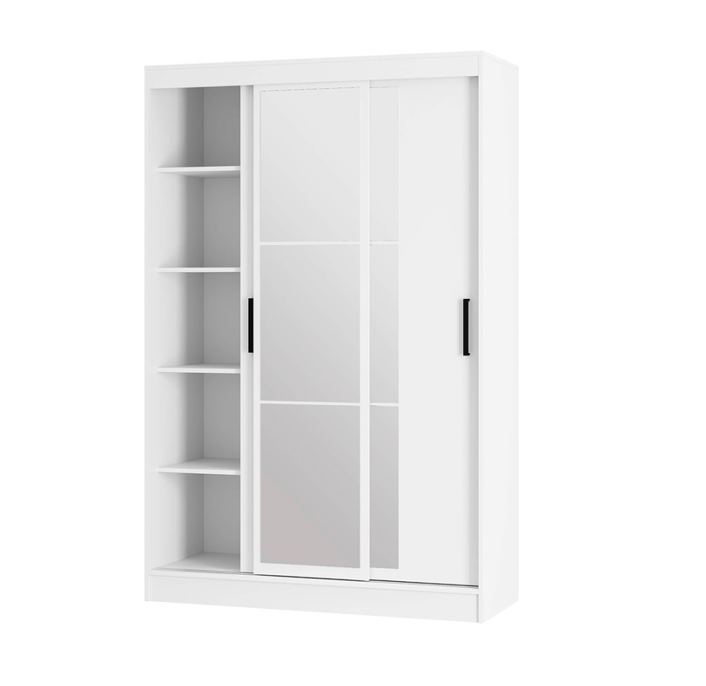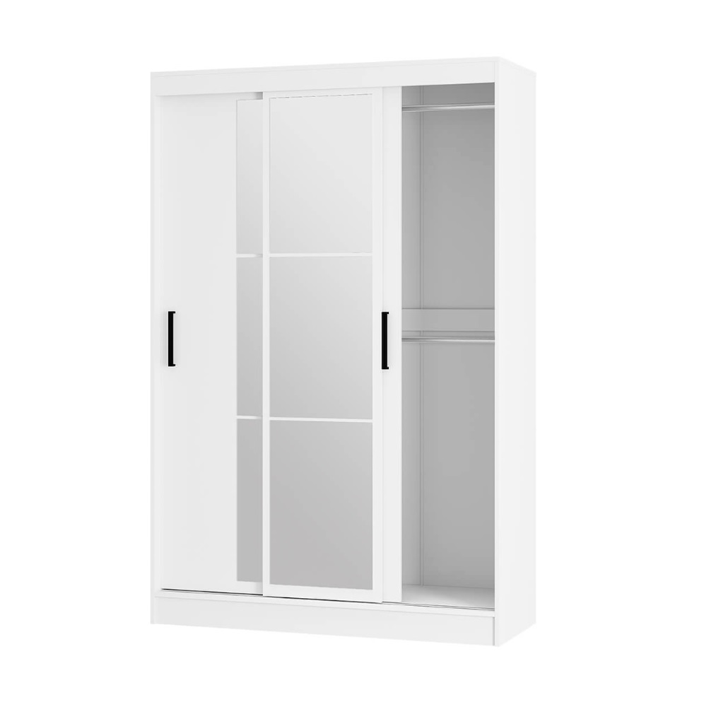 Трёхдверный шкаф-купе "Тайм" представляет собой сочетание практичности и функциональности. Это оптимальный вариант с точки зрения эргономики пространства. Раздвижные створки снабжены удобными ручками, центральная створка полностью декорирована зеркалом с еврокромкой, которое создаёт иллюзию расширенного пространства. Внутри с одной стороны находятся пять просторных полок для хранения вещей и постельного белья, с другой стороны – вместительная зона хранения с двумя горизонтальными хромированными штангами для одежды на вешалках. Максимальная нагрузка на полку - 10 кг. Все три створки подвижны.