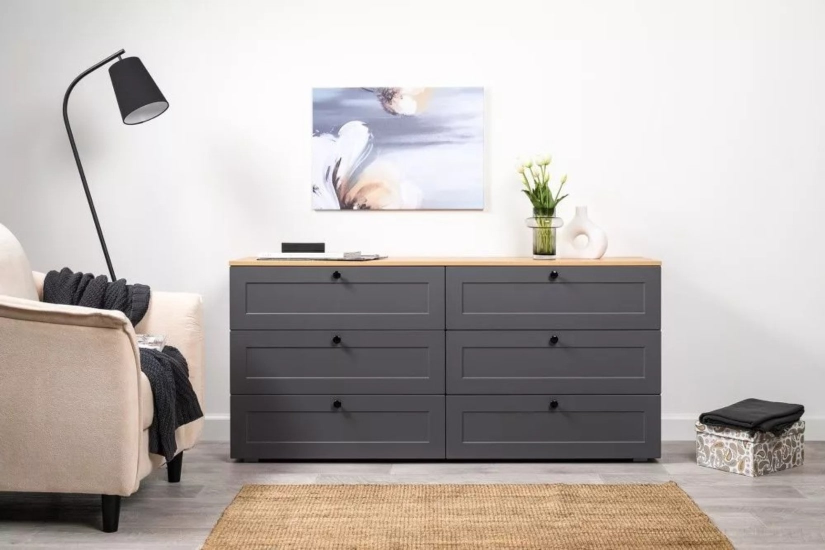 Остин Комод 16.240 Графит из модульной коллекции Остин представляет собой элегантное и функциональное решение, которое станет отличным дополнением как для гостиной, так и для спальни. Его широкий дизайн и шесть вместительных ящиков обеспечивают достаточное пространство для хранения разнообразных предметов, от одежды до различных аксессуаров. Это позволяет поддерживать порядок и организованность в комнате, избавляя от необходимости хранения вещей на видимых поверхностях.